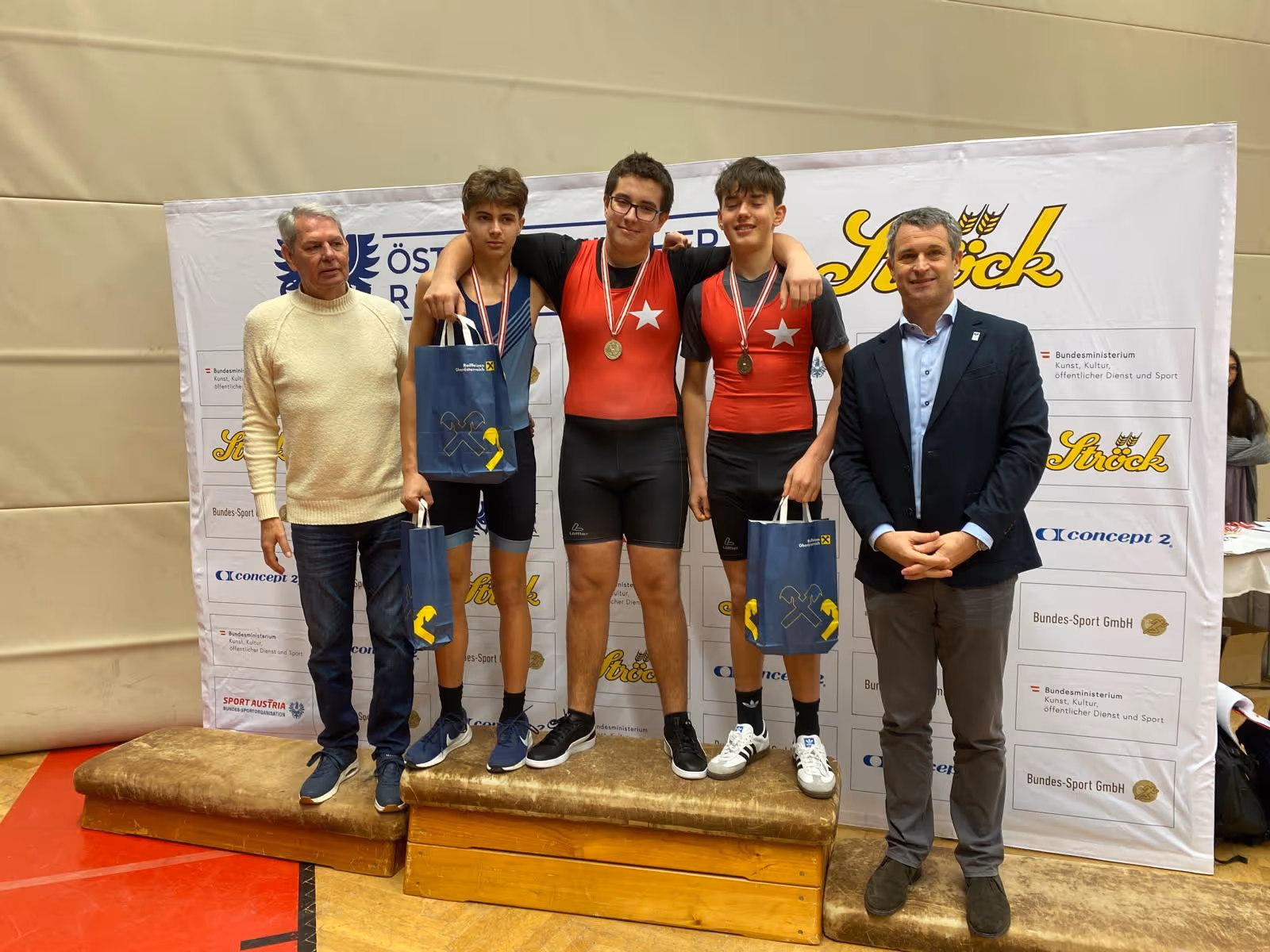 Der Schülerinnen-Vierer mit Ilvy Herrenhof (2F), Emma Mairinger-Brandner (2B), Lena Fischer(2B) und Sophia Bernthaler holten sich in der Mannschaft bei den Österreichischen Indoor Rudermeisterschaften die Goldmedaille. Zudem wurde Ilvy in der Einzelwertung Erste!
